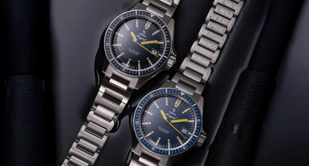 Fondée en 1948 à Besançon, Yema est la doyenne de la sélection. La marque a équipé l’armée française, est partie dans l’espace en 1982 (sur le poignet de Jean-Loup Chrétien à bord de Saliout 7), et a traversé les modes sans jamais vraiment disparaître.