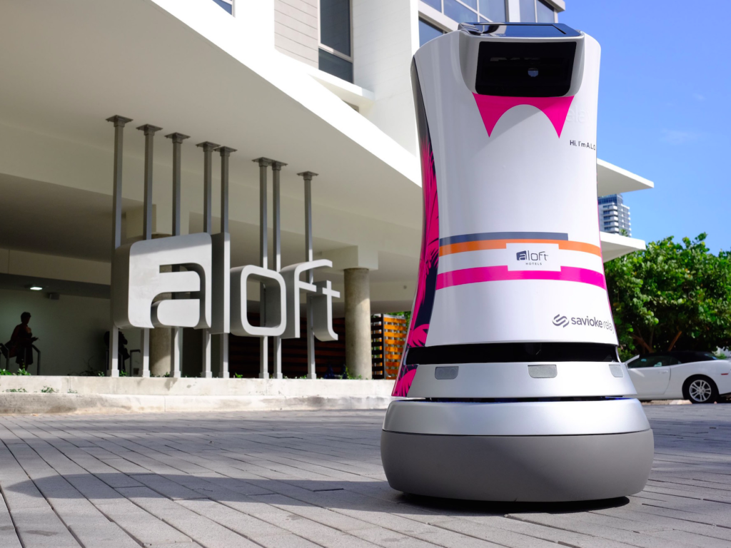 Aloft, la marque design de Marriott, a lancé en 2014 à Cupertino le programme Botlr : un robot-majordome fabriqué par Savioke (devenu Relay). Il monte tout seul dans l’ascenseur, livre une brosse à dents supplémentaire à votre chambre, et vous envoie un SMS pour ouvrir la porte quand il arrive. Premier déploiement grand public d’un robot-livreur dans l’hôtellerie occidentale.